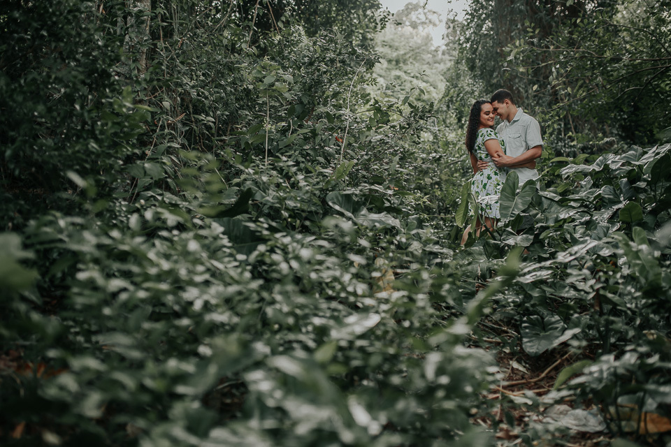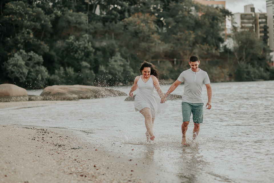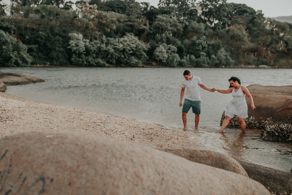 No dia do ensaio, estávamos aguardando o casal no local combinado, quando recebemos uma mensagem da noiva avisando que o motorista do uber havia se perdido para buscá-los e iriam se atrasar e além do atraso, o vestido dela que iria começar o ensaio havia rasgado no trajeto.