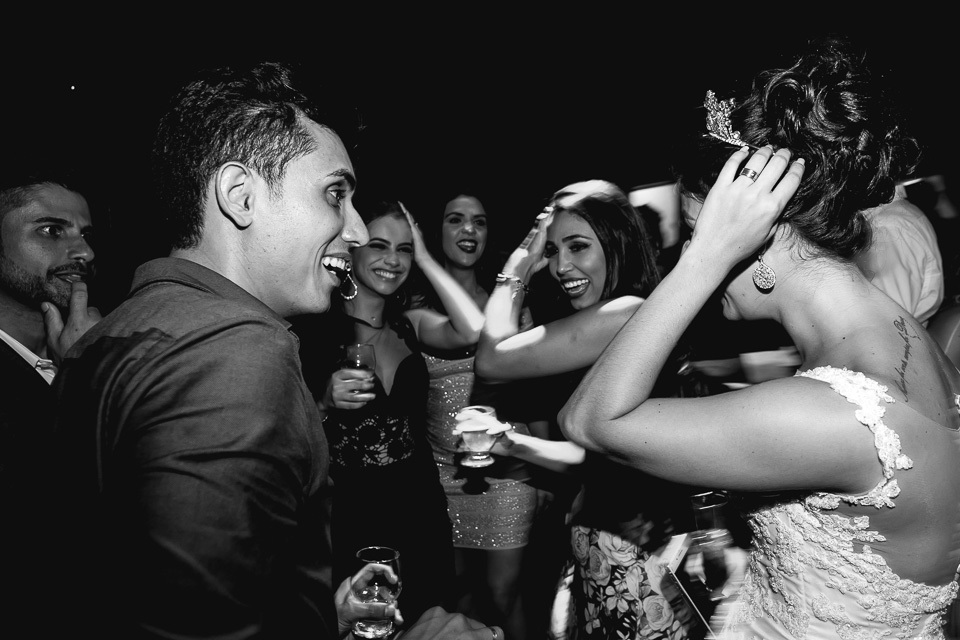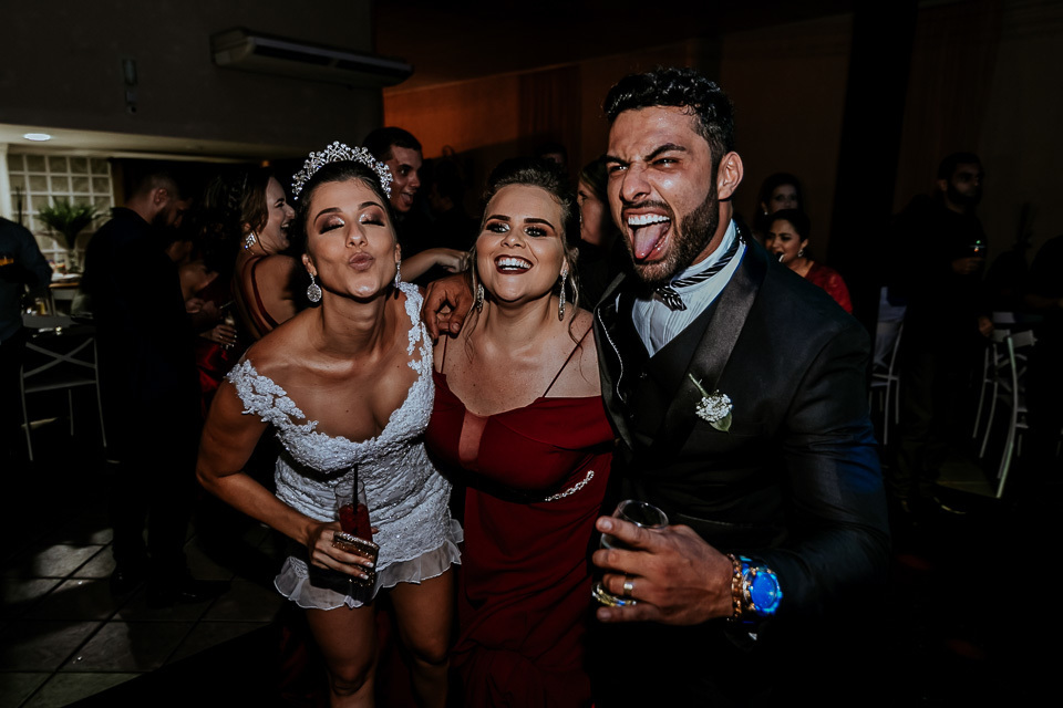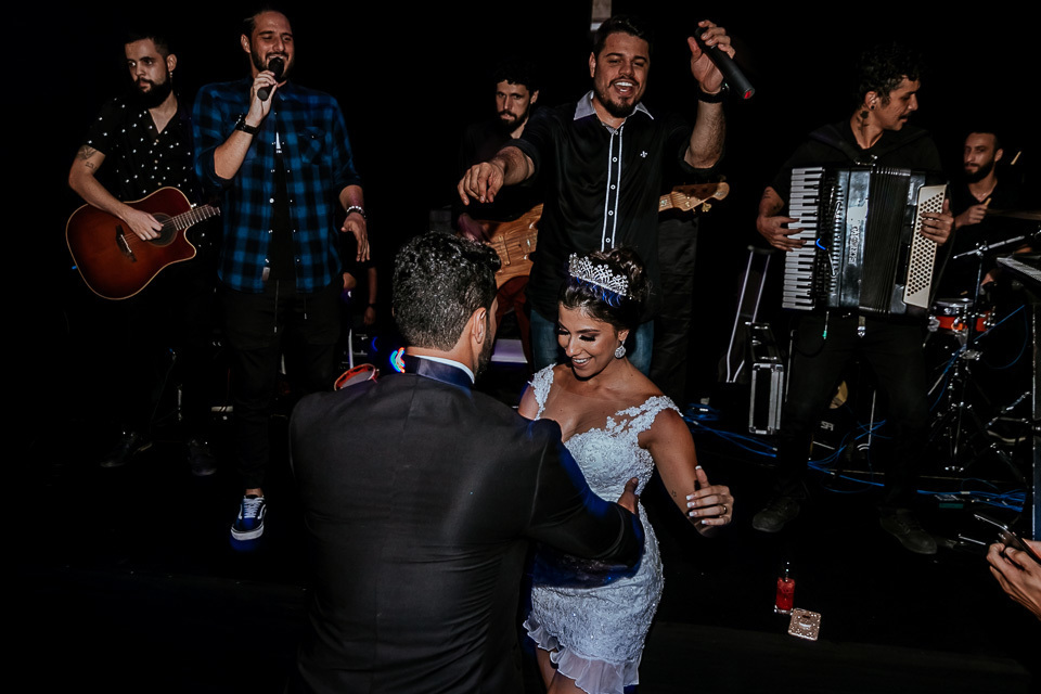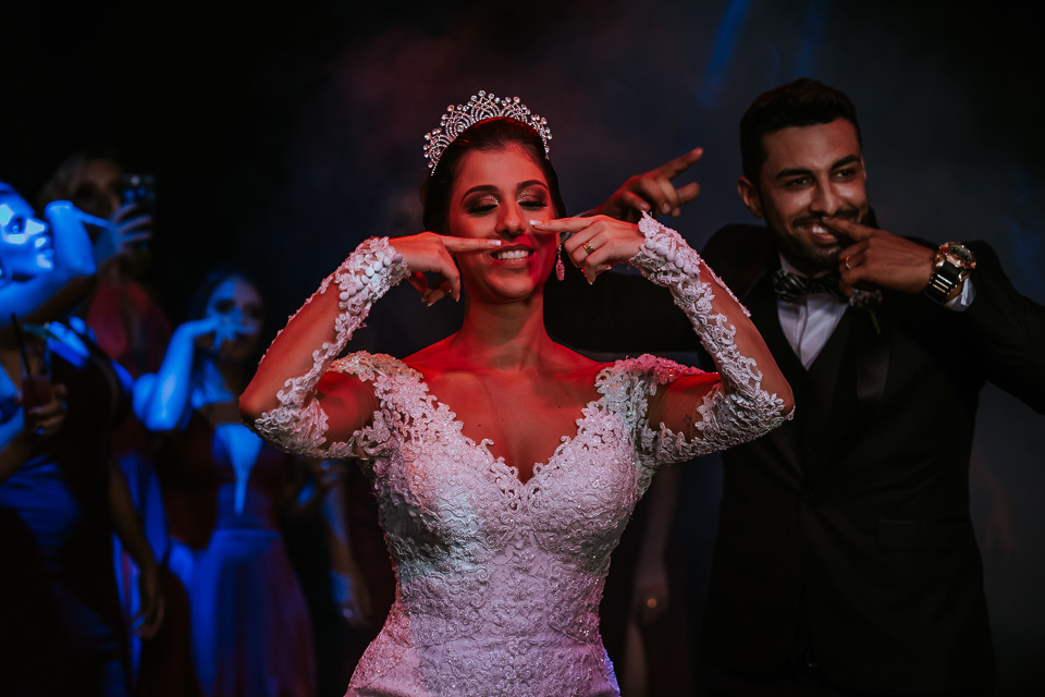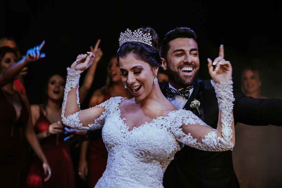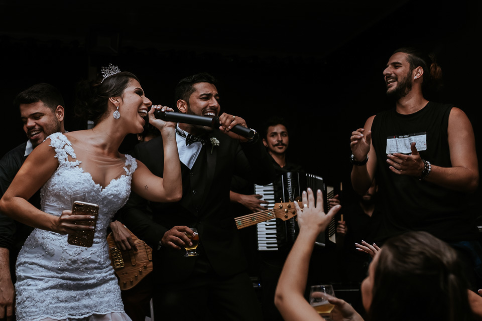 Pensa no casal animado, agora multiplica por dois kkkkkk! Desde o ensaio de pré casamento, eles já vieram animados buscando ideias diferentes e que tivesse a cara deles, como resultado tivemos fotos incríveis que mostram muito sobre o casal.. e no casamento não poderia ser diferente! Eles aproveitaram cada segundo da festa, banda, Dj e Mc animaram a festa com estilos musicais bem variados fazendo com que a pista tivesse sempre cheia =D!