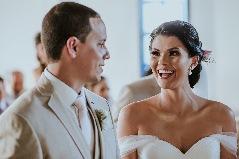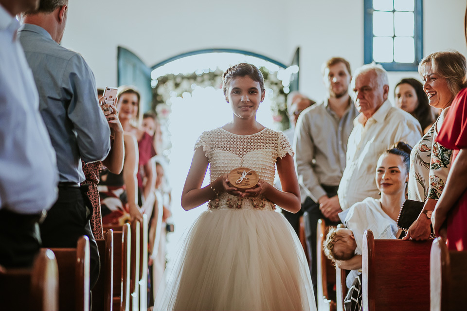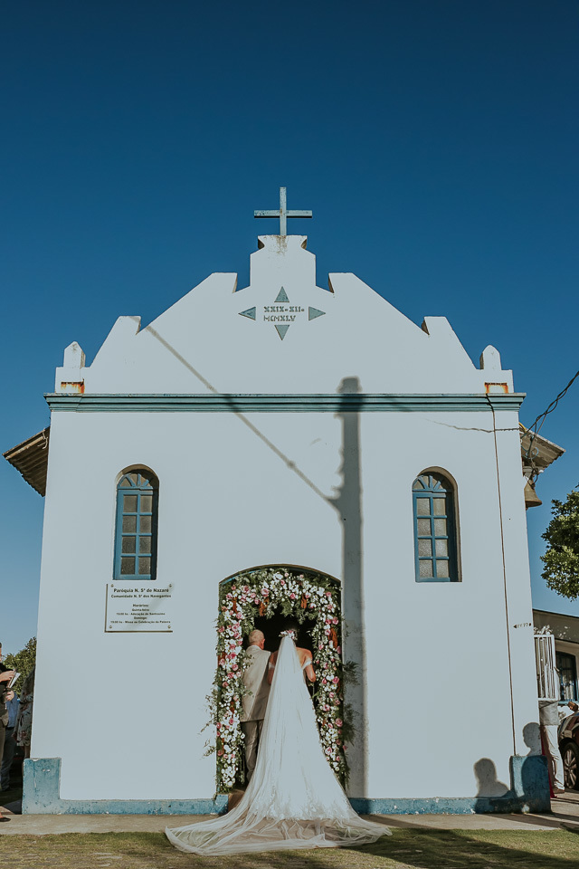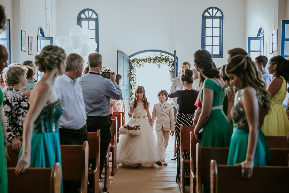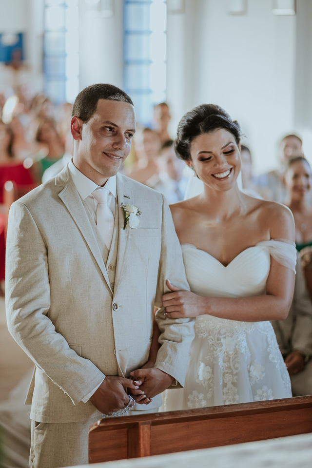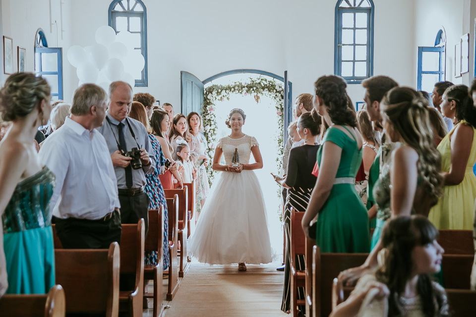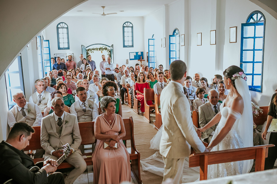 Com todas lindas e produzidas partimos para a cerimônia, que aconteceu em uma igrejinha que MDS, quão graciosa ela é! <3 No alto de um morro em Ponta da Fruta, Vila Velha, a luz do entardecer entrava pelos vitrais e nos permitiu fazer fotos de tirar o fôlego! Toda a cerimonia foi embalada de muita emoção. Cada olhar e carinho trocados pelo casal fizeram os convidados sentirem o amor que ali estava sendo selado.