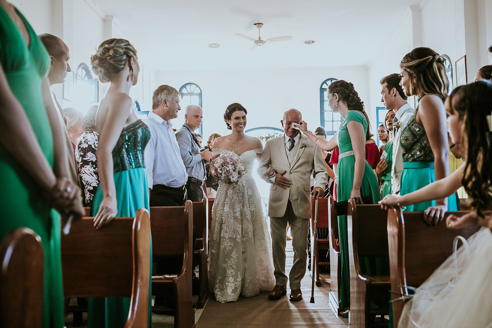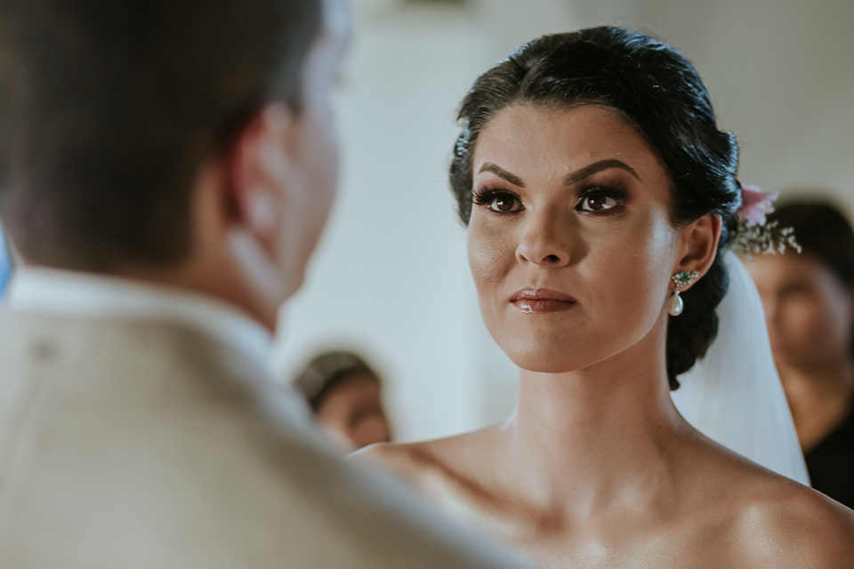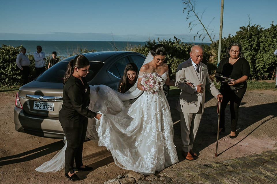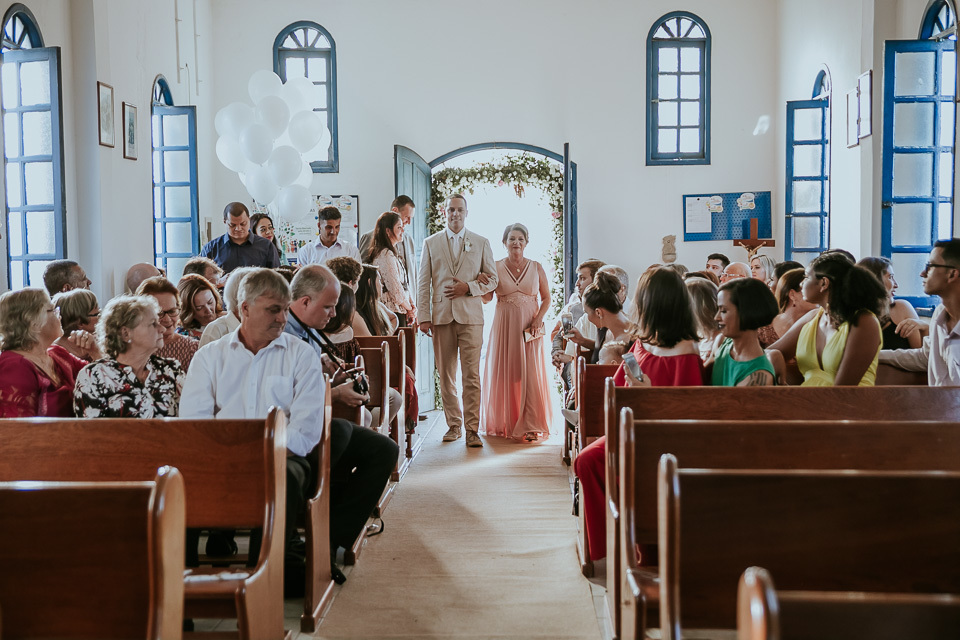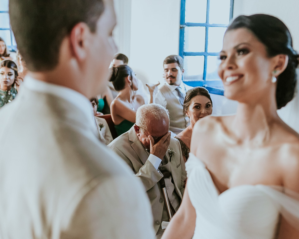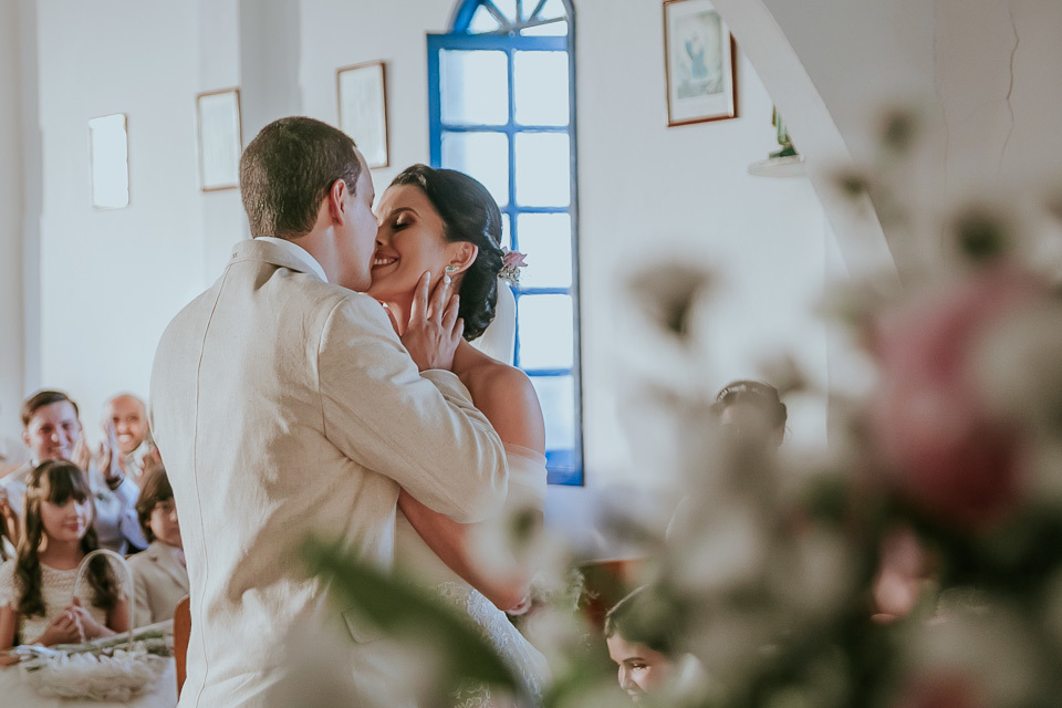Com todas lindas e produzidas partimos para a cerimônia, que aconteceu em uma igrejinha que MDS, quão graciosa ela é! <3 No alto de um morro em Ponta da Fruta, Vila Velha, a luz do entardecer entrava pelos vitrais e nos permitiu fazer fotos de tirar o fôlego! Toda a cerimonia foi embalada de muita emoção. Cada olhar e carinho trocados pelo casal fizeram os convidados sentirem o amor que ali estava sendo selado.