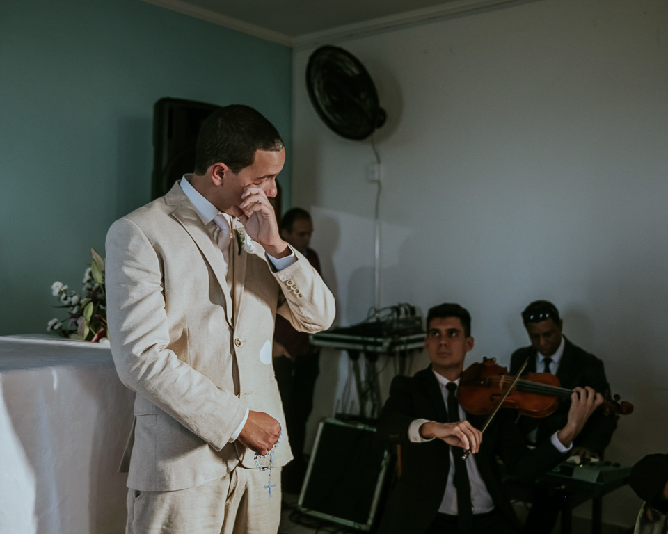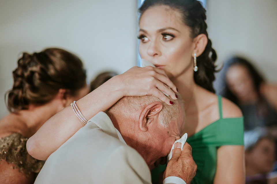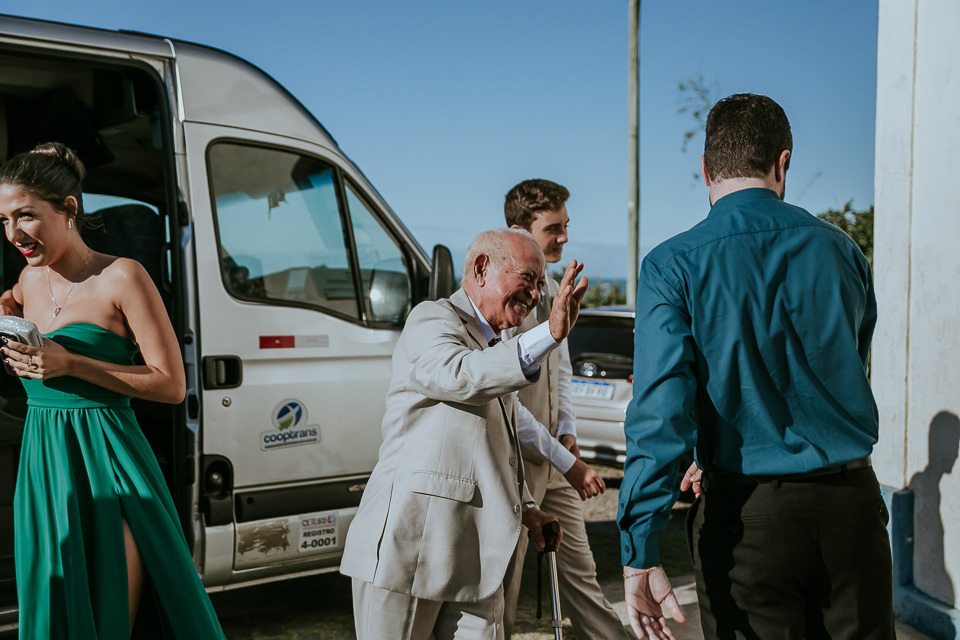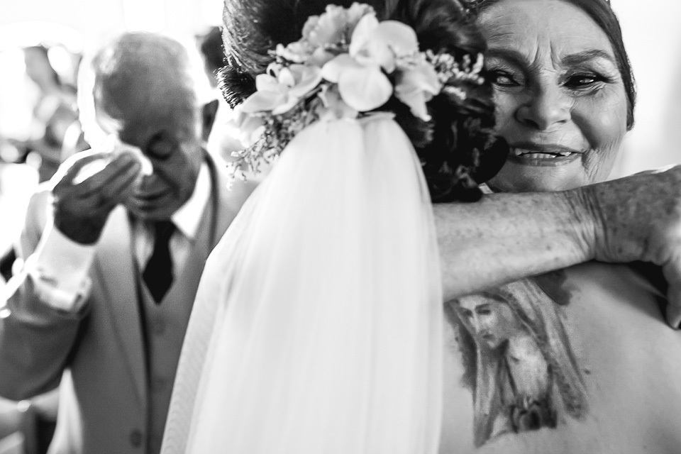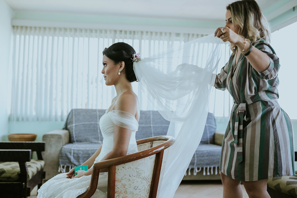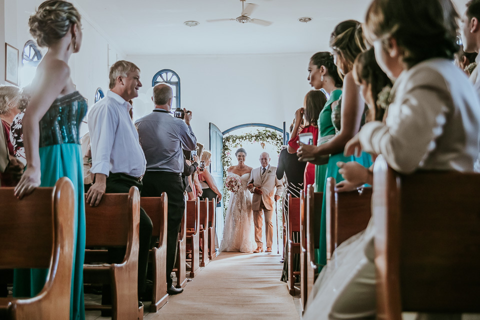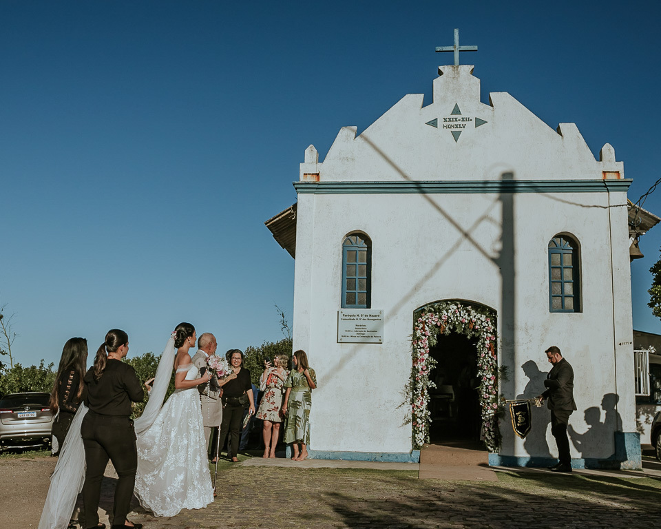 Com todas lindas e produzidas partimos para a cerimônia, que aconteceu em uma igrejinha que MDS, quão graciosa ela é! <3 No alto de um morro em Ponta da Fruta, Vila Velha, a luz do entardecer entrava pelos vitrais e nos permitiu fazer fotos de tirar o fôlego! Toda a cerimonia foi embalada de muita emoção. Cada olhar e carinho trocados pelo casal fizeram os convidados sentirem o amor que ali estava sendo selado.