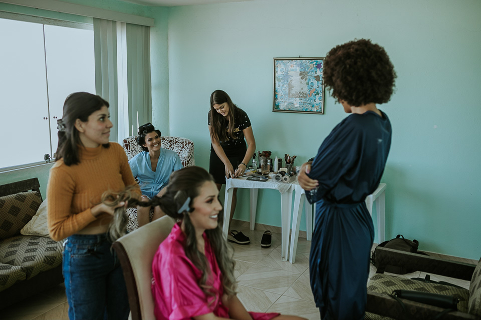 O grande dia deles começou pelo ensaio de Making of que a Dani fez numa pousadinha bem aconchegante, onde estavam suas amigas, madrinhas, mãe e sogra. Foi um momento bem íntimo, leve e descontraído de registrar.