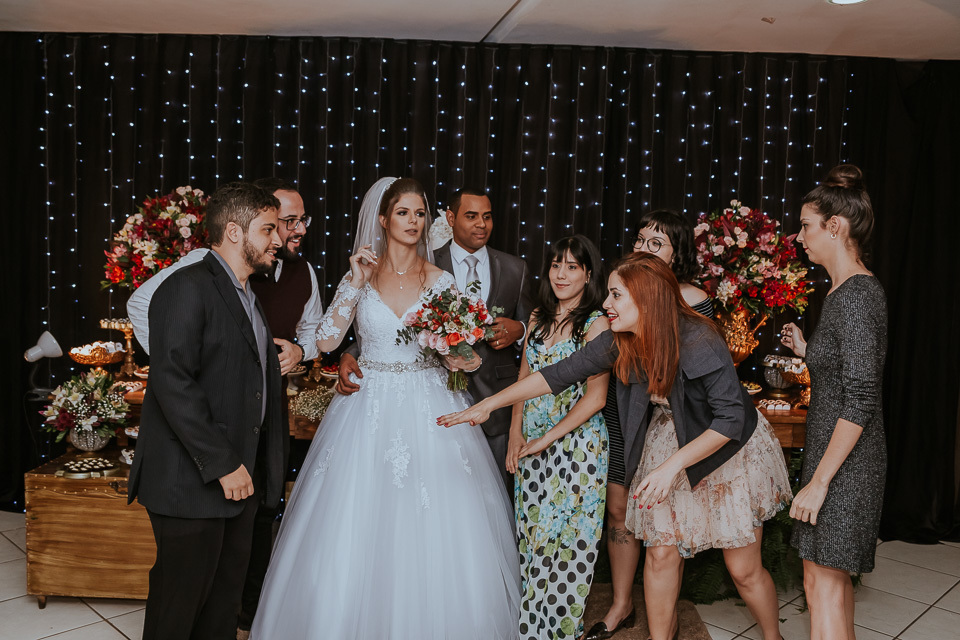 O casal se conhece há 13 anos e estão juntos há 5 anos. Eles se conheceram na igreja que optaram por realizar o casamento <3... foi uma cerimônia tão linda, com muitos louvores e emoção também. O noivo estava emocionado desde o início da recepção com os convidados, cada abraço, cada palavra de felicitação faziam com que ele se emocionasse ainda mais! Sobre a festa, foi exatamente o estilo deles, uma festa mais íntima e aconchegante que foi realizada em um restaurante.