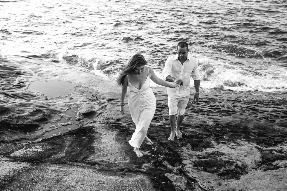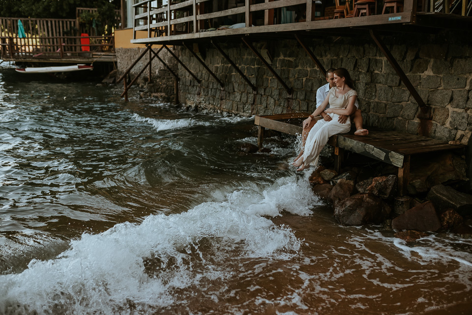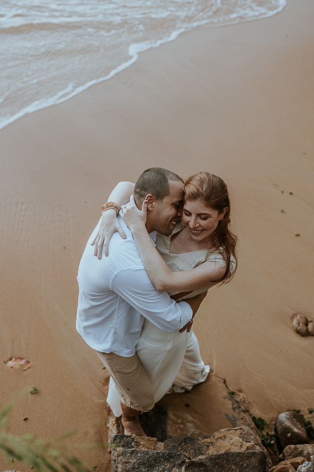 A ideia desde que conhecemos a Vanessa, era de fotografar o pré casamento na praia. Como o casal é de Vila Velha, fomos para uma praia que ainda não havíamos fotografado, a Praia do Bananal. Já sabíamos que ela era pequena e não pegava o por do sol, mas achamos ela um charme! =D Chegando na praia, a maré estava cheia, mas particularmente, só aumentou o charme da praia <3!