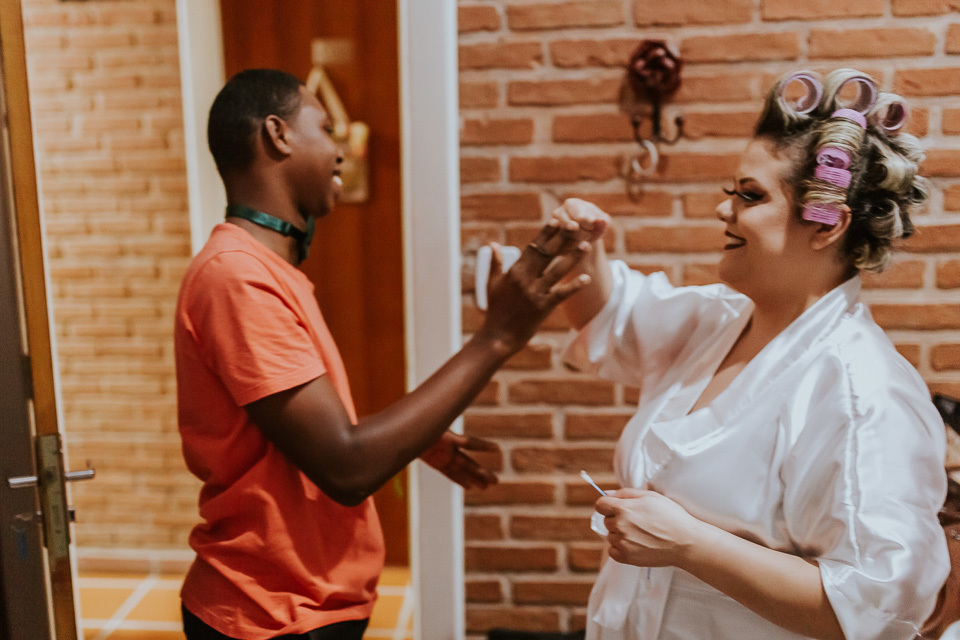 Quando chegamos no local escolhido para o casamento, Solar das Acácias, percebemos que cada detalhe refletia a personalidade do casal. O pastor que conduziu a cerimônia é pai do Filipe, o que tornou o casamento ainda mais lindo e especial! Pensa na honra do pai poder casar e abençoar o próprio filho <3! Os pajens do casamento, são irmão da noiva, pensa em uma irmão orgulhosa durante a entrada deles <3!