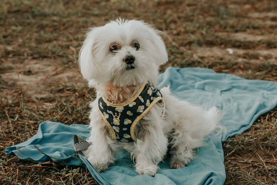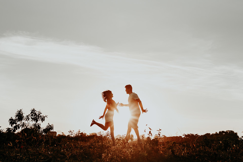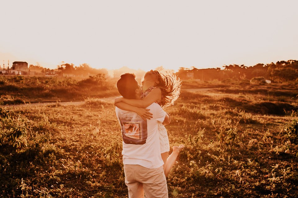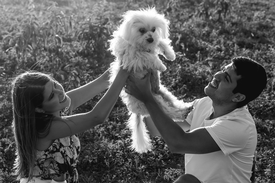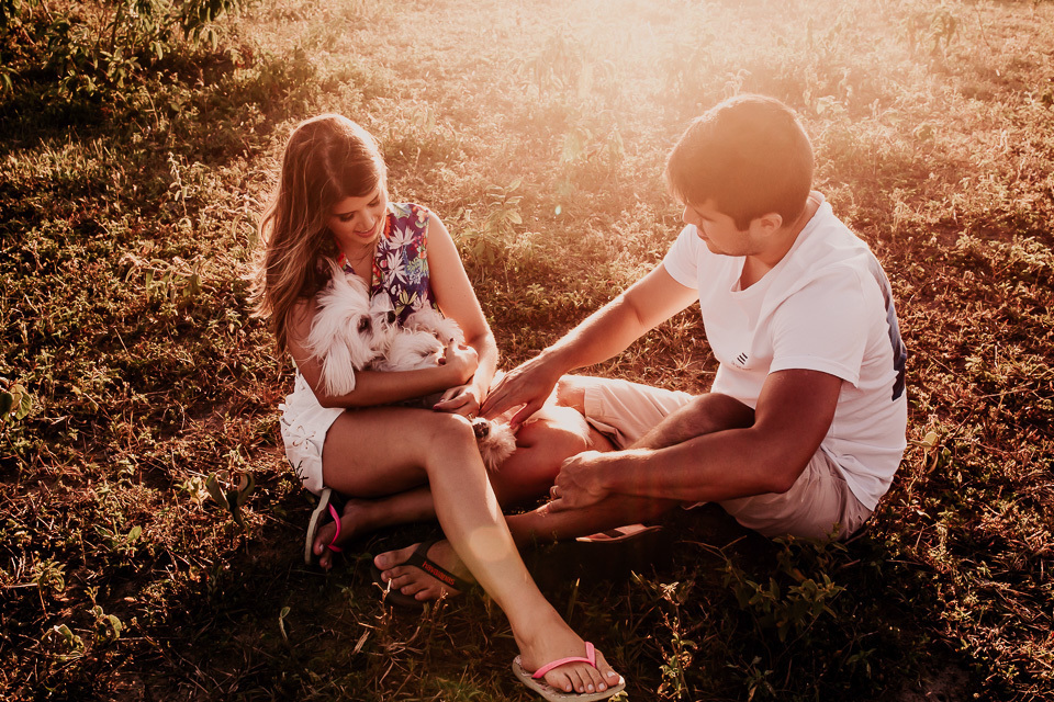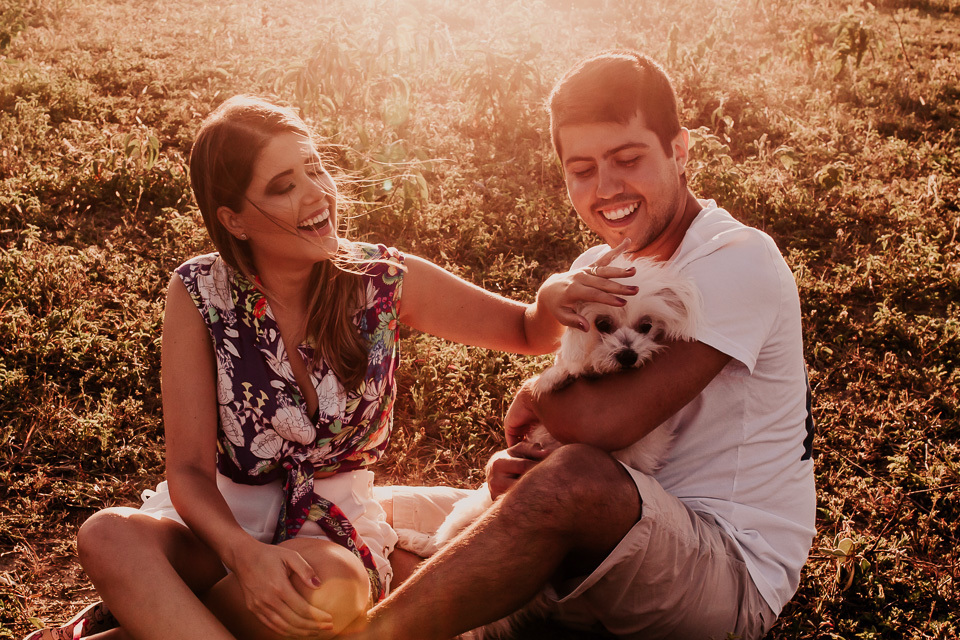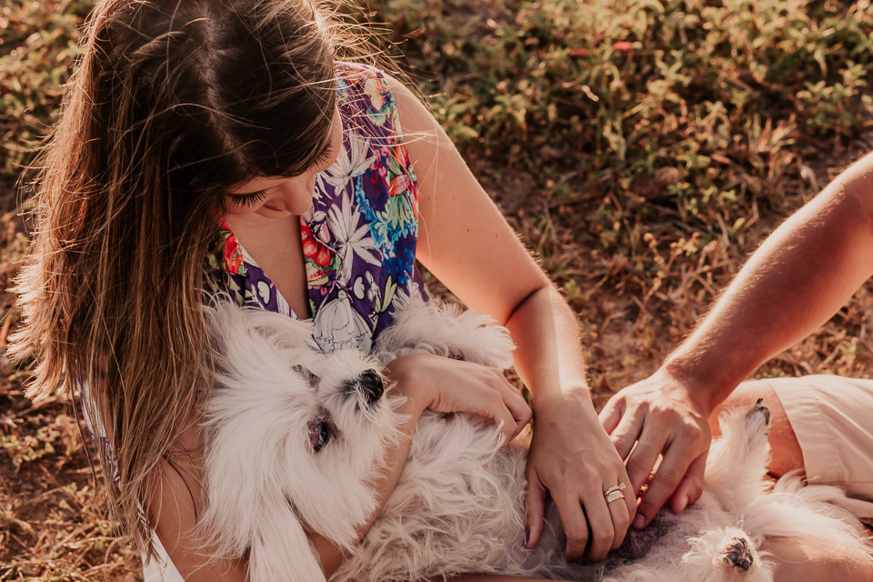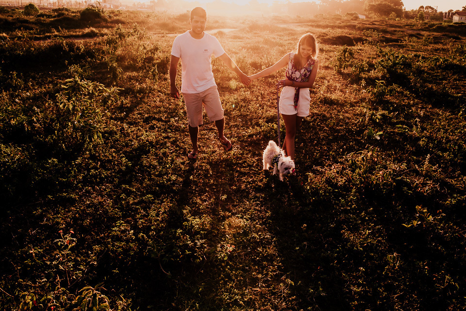 Quando a Paula entrou em contato, comentou que ela e o Vitor queriam um local que tivesse um pôr do sol lindo e que o filho de quatro patas pudesse participar das fotos também!