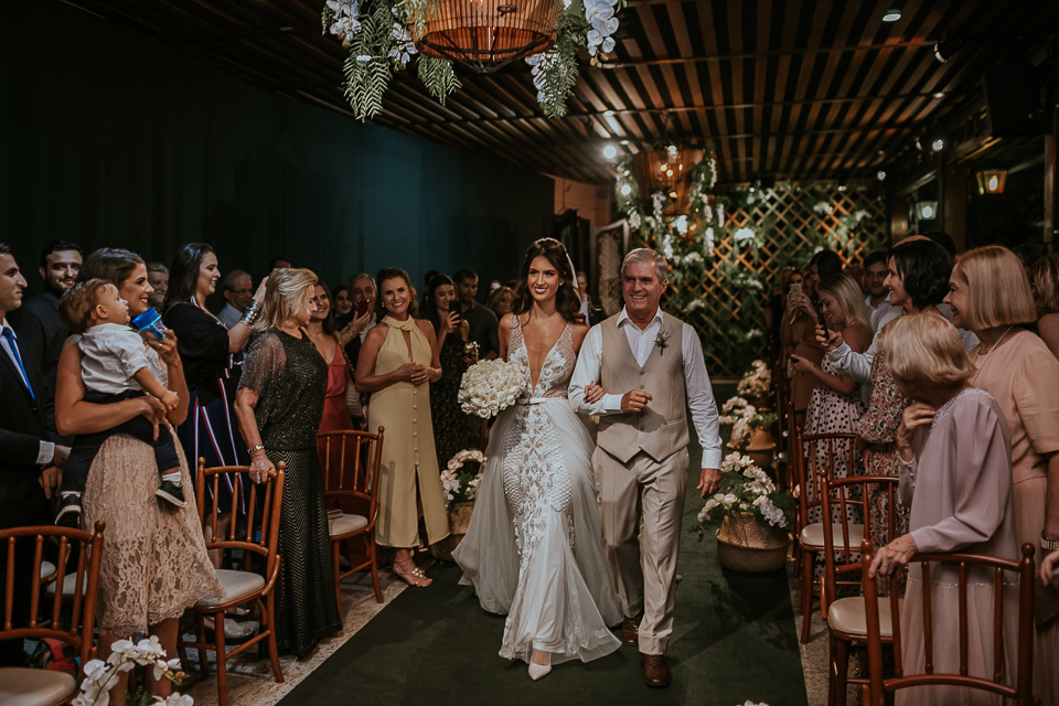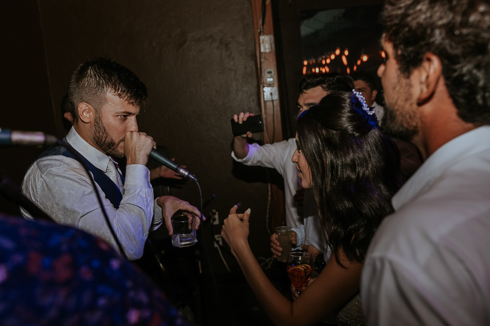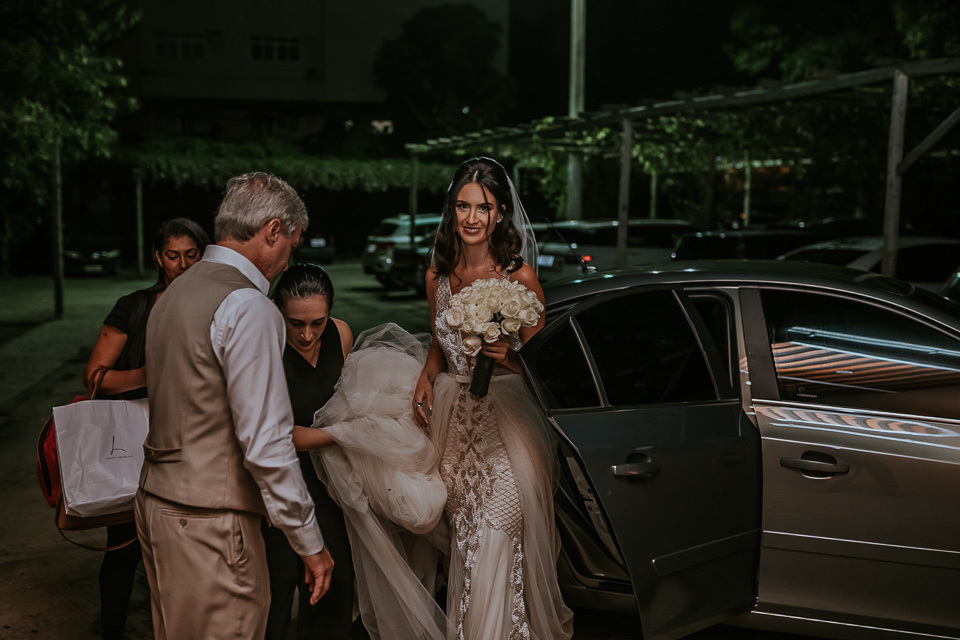 Eles haviam definido a pouco tempo sobre o casamento. Então, estavam correndo contra o tempo para conseguirem todos os fornecedores! A ideia inicial era realizar o casamento final de tarde e estavam definindo sobre o local que tivessem opção para cerimônia e festa. Menos de dez dias antes do casamento recebi uma mensagem da noiva... precisavam trocar o local do casamento porque estávamos em uma semana chuvosa. Eles foram realizar a última visita técnica e descobriram que o acesso ao local quando chove era muito complicado. Caso chovesse no dia do casamento, eles e os convidados teriam muita dificuldade.