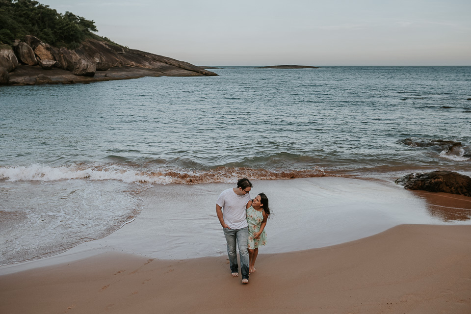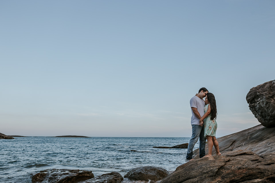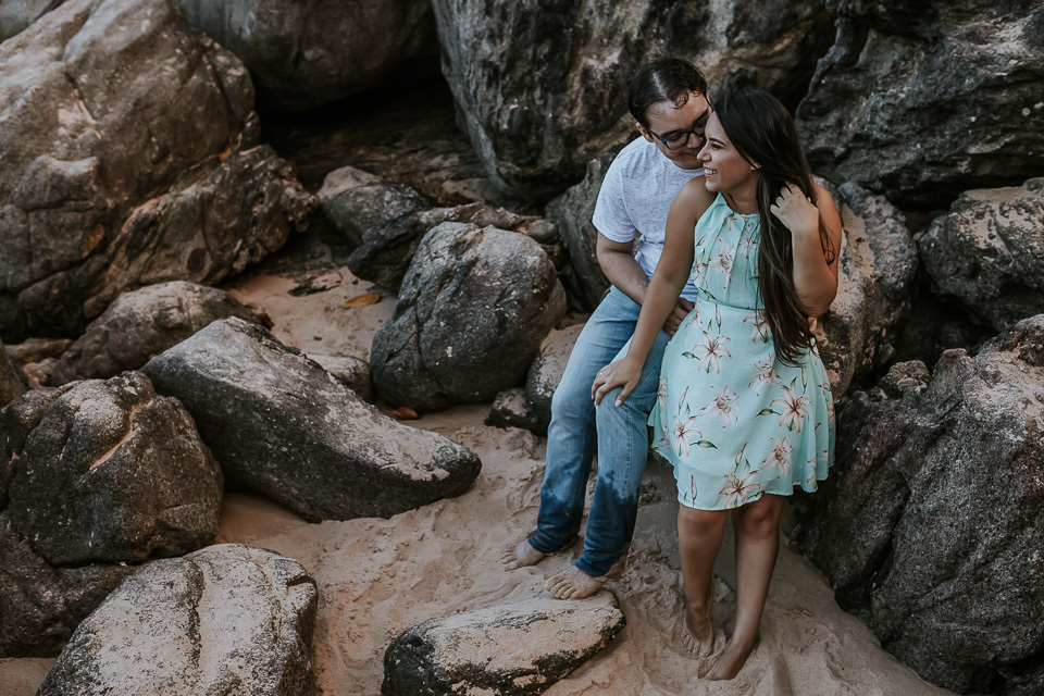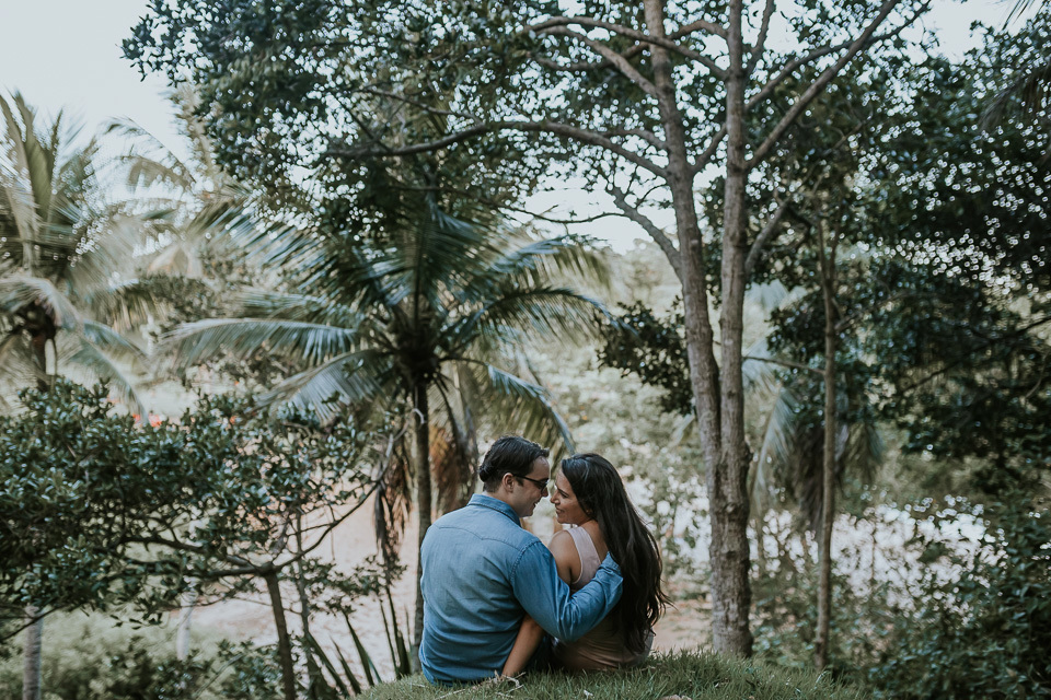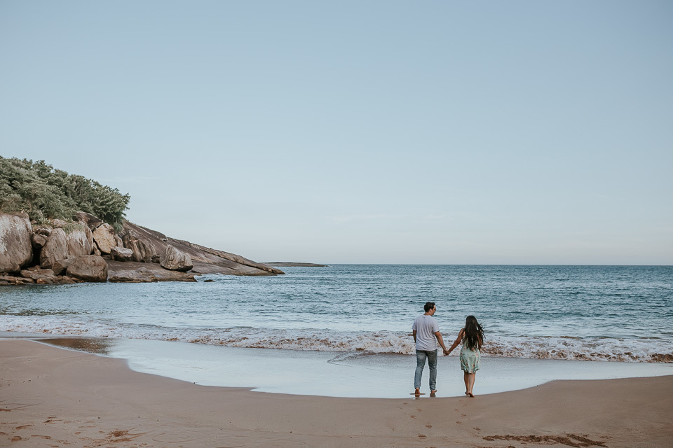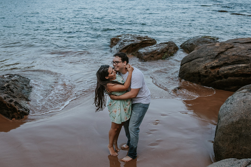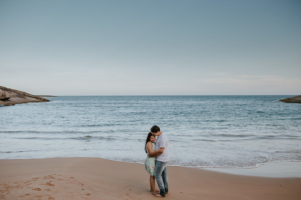 O casal gostou de uma praia em Guarapari para realizar as fotos de pré casamento. Queriam um local que tivesse a praia, mas também tivesse uma área arborizada (imagina a felicidade de Thiago <3 kkkk).