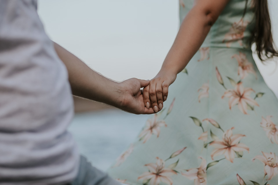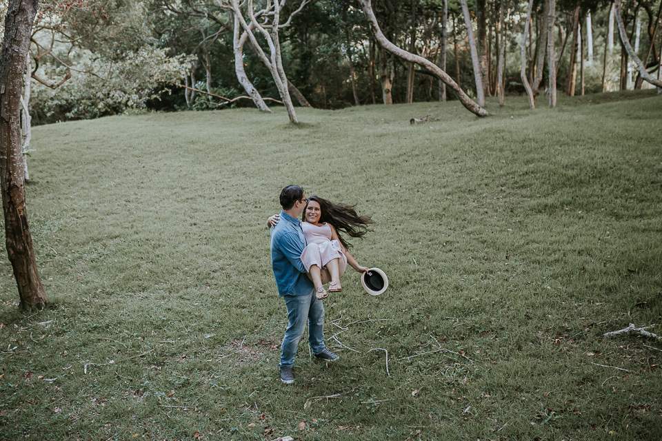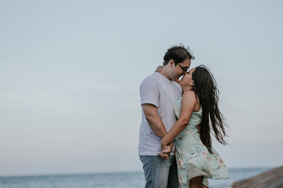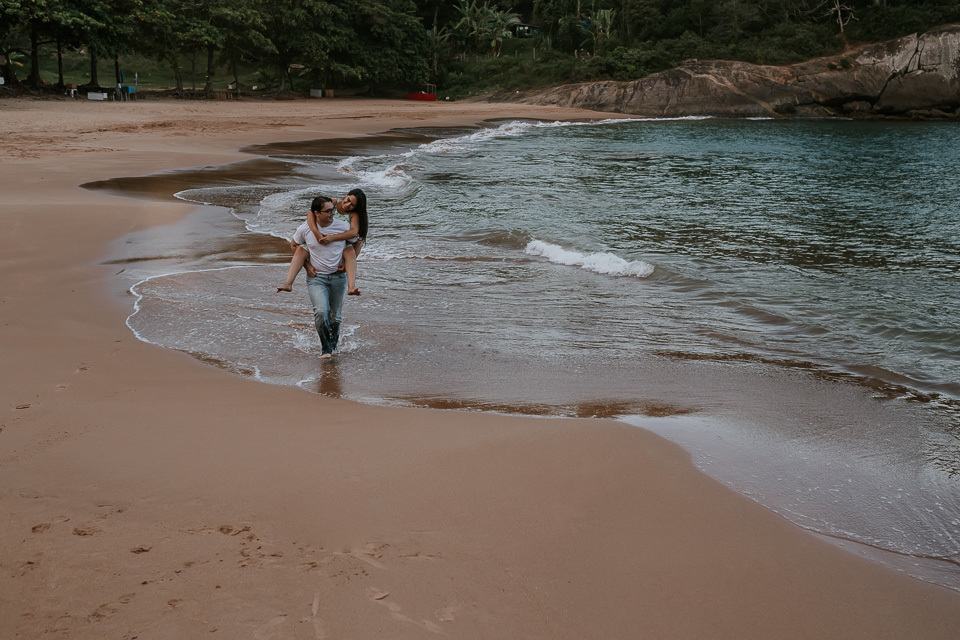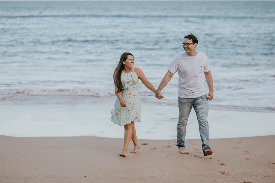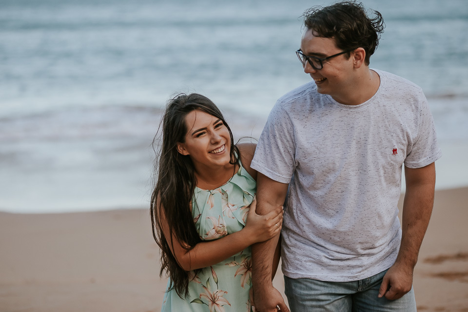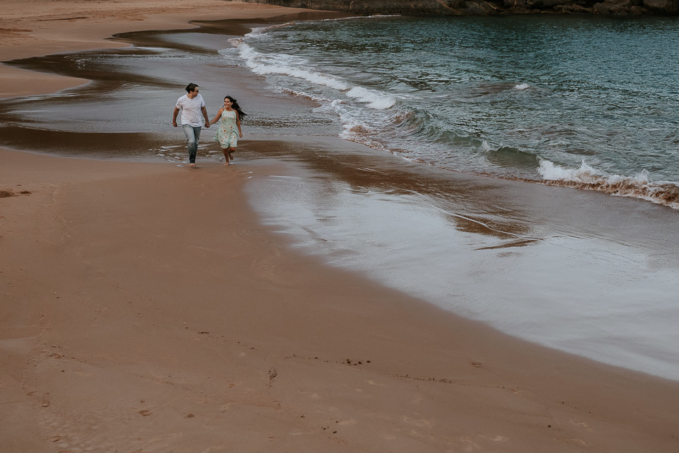 O casal gostou de uma praia em Guarapari para realizar as fotos de pré casamento. Queriam um local que tivesse a praia, mas também tivesse uma área arborizada (imagina a felicidade de Thiago <3 kkkk).