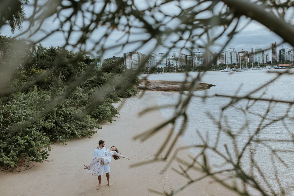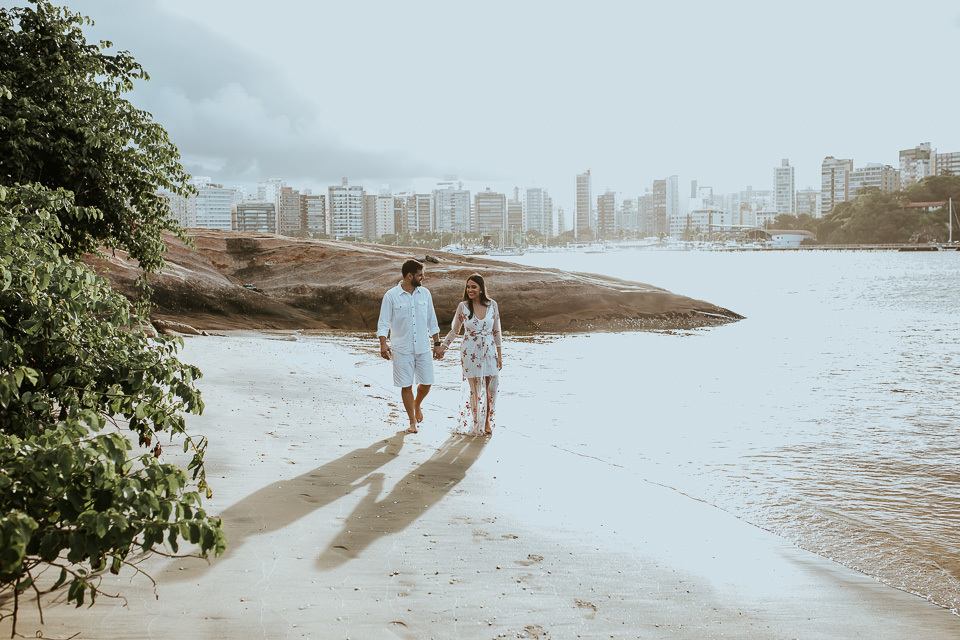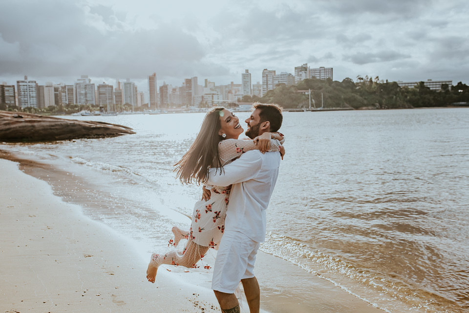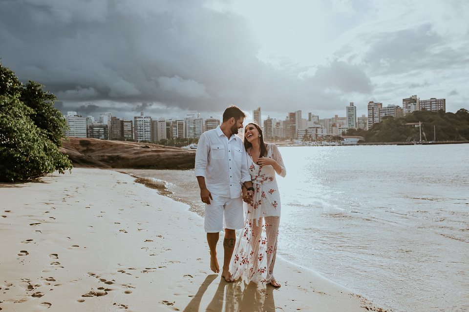 Uma virada meteorológica fez mudar os planos, que antes era fotografar em Guarapari-ES num belo dia de sol. Apesar da correria e de não ser bem como planejado, fomos agraciados em Vitória-ES com uma tarde de sol, nublada e no finalzinho do ensaio, a chuva. Toda a virada de tempo deu uma bela enriquecida nas fotos. Mas falando sério, com esses sorrisos e olhares apaixonados, nem precisa de dias ensolarados, para aquecer nossos corações, não é mesmo?