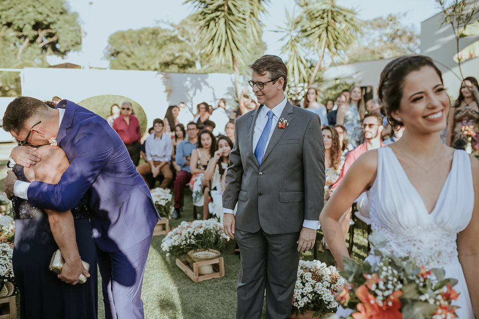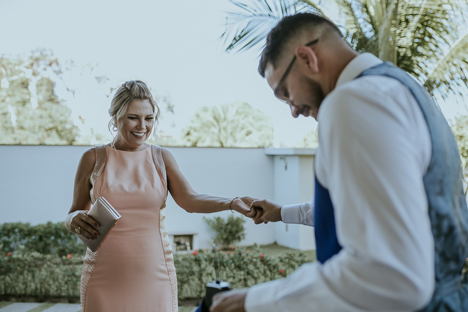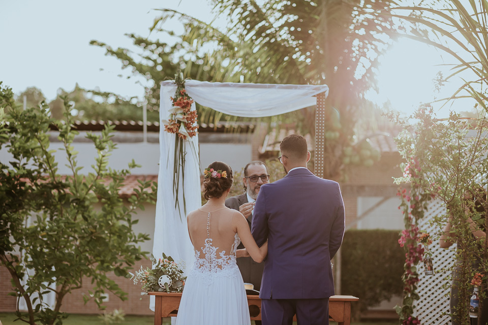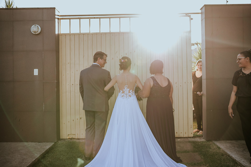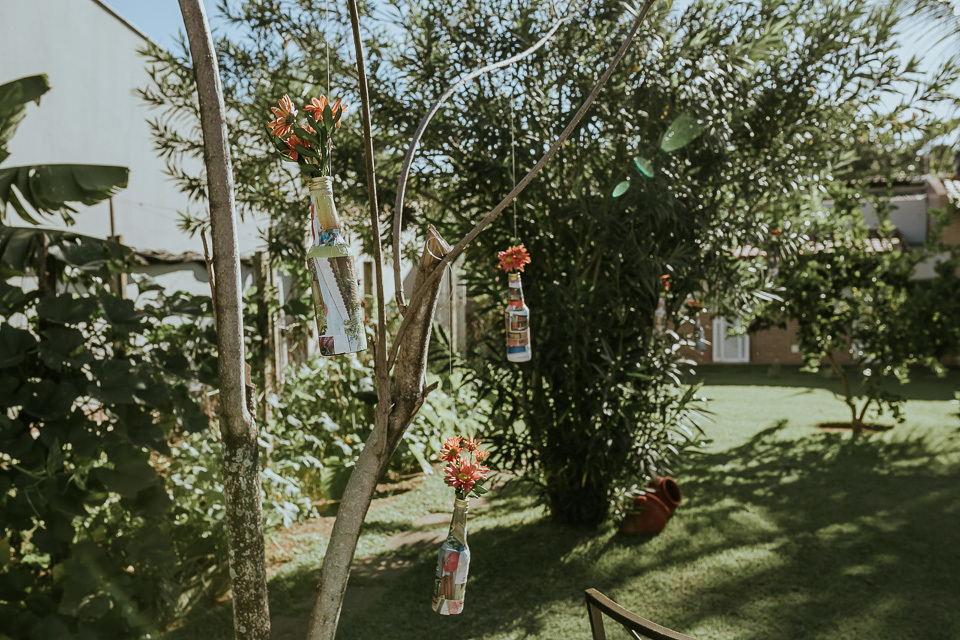 O casamento aconteceu na casa do tio da noiva em Manguinhos. Um casamento bem intimista e cheio de significado em cada detalhe. Quando chegamos no local do casamento para o making of da noiva, o noivo estava ajudando a finalizar a decoração e fomos descobrindo que muitos elementos presentes desde a cerimônia, até a mesa do bolo, foram feitas pela família do casal.... =D bolo, docinhos, garrafinhas presentes na cerimônia (essas foram feitas carinhosamente pela "vó maria" que não estava presente fisicamente, mas certamente estava presente através de pensamentos e abençoando o casal).