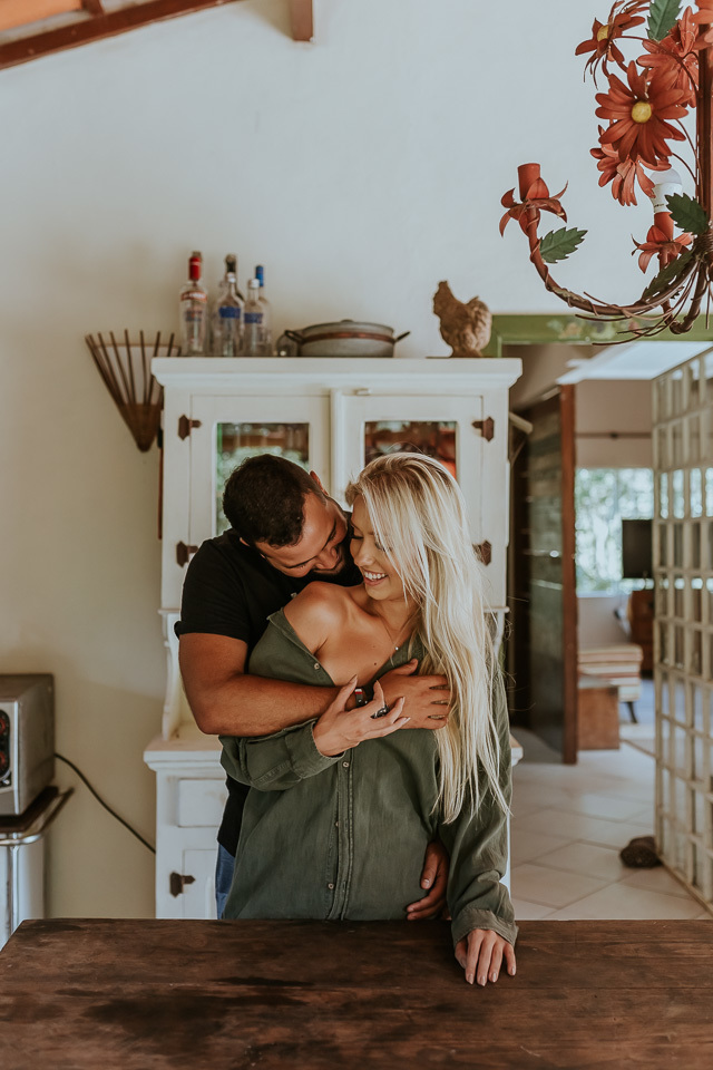 Quando o casal nos procura para realizar o ensaio, sempre buscamos conhecer um pouco da história deles e o que eles gostam de fazer juntos para sugerir um ensaio que tenha a carinha do casal! As vezes o local pode ser uma praia, campo ou montanha.... mas não precisa ser apenas estes tipos de locação... Imagina que um determinado casal, não tem hábito de ir a praia ou sair muito, mas ama ficar em casa, ver filme, tomar vinho... Porque não fazer um ensaio em casa como eles gostam de estar?
